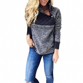 Nieformalny Luźny Blok Kolorów Dekolt W Serek Długi Rękaw