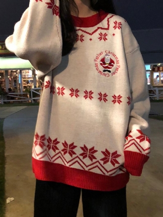 Damskie Swetry W Stylu Vintage Z Okrągłym Dekoltem I Długim Rękawem