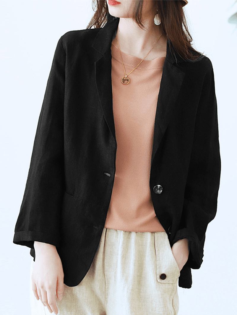 100% Bawełna Lapel Business Casual Blazer Z Przednimi Kieszeniami Dla Kobiet