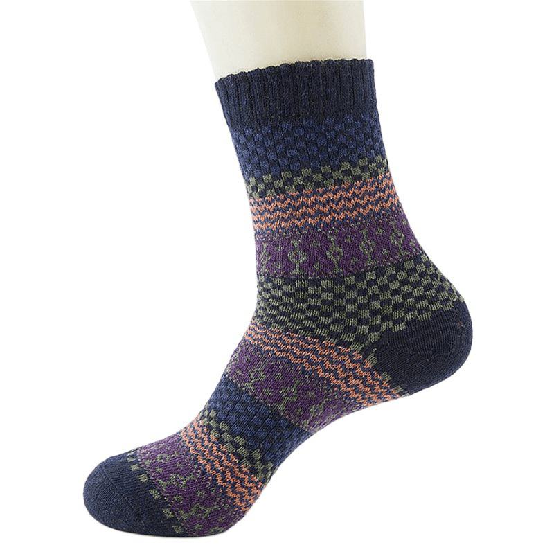 5 par, męskie ciepłe skarpetki z etnicznej wełny, w kratę, w geometryczne paski i prążkowana długa dzianina