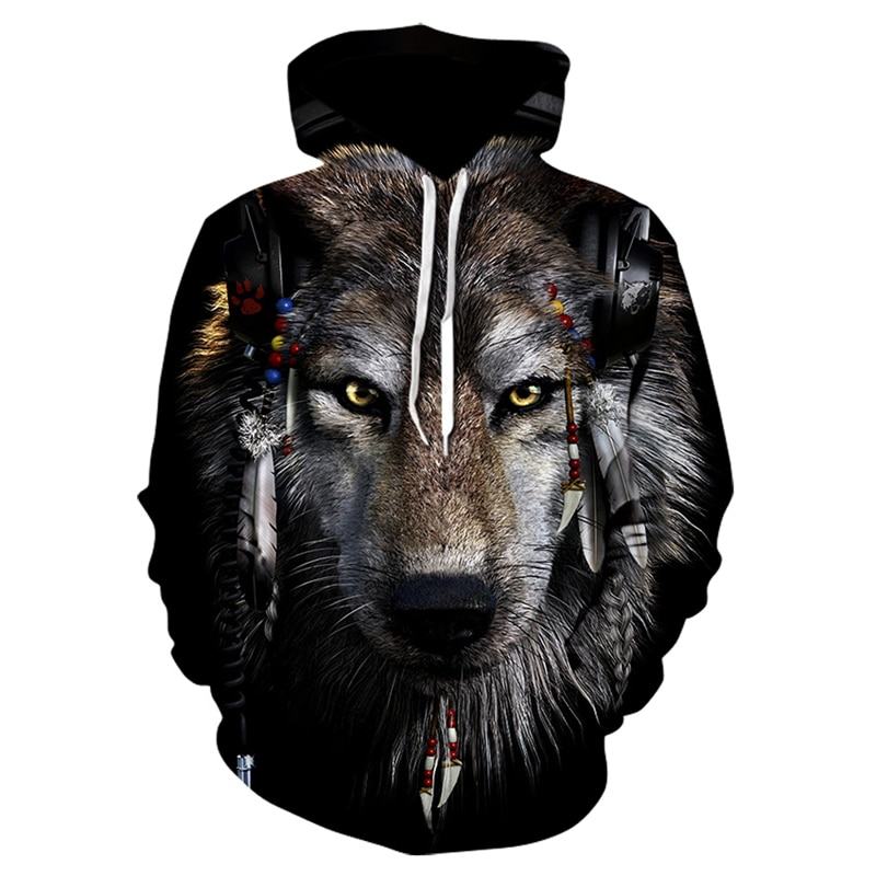 Bluza Męska Z Kapturem Wolf Head Drukowanie Digital