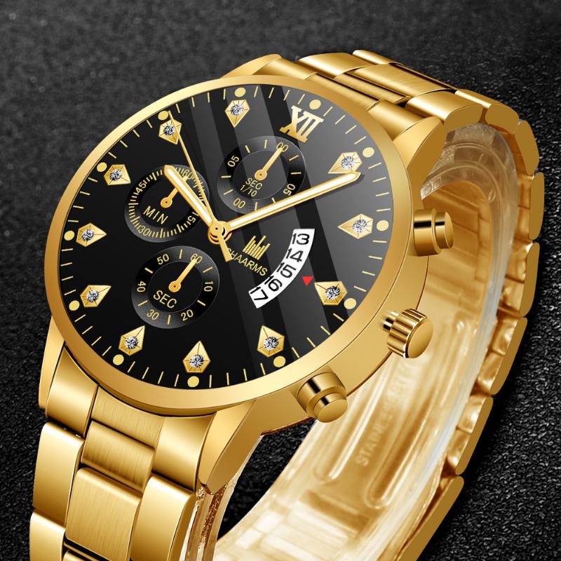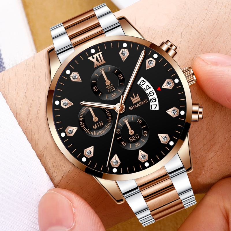 Business Casual z kalendarzem inkrustowanym cyrkoniami Tarcza ze stalowym paskiem Męski zegarek kwarcowy