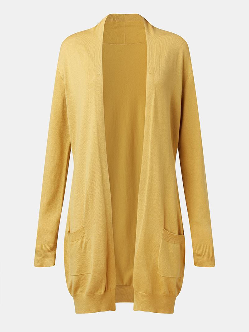 Swobodny kardigan z długimi rękawami w jednolitym kolorze z kieszeniami