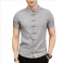 Chiński Węzeł Klamra Vintage Chic Stójka Koszule Z Krótkim Rękawem Pure Color Dla Mężczyzn