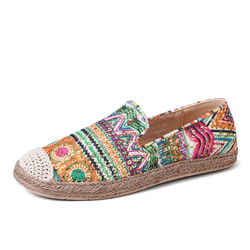 CZeski Wzór Hollow Out Mesh Cloth Poręczny Slip On Casual Espadrille Flat Shoes
