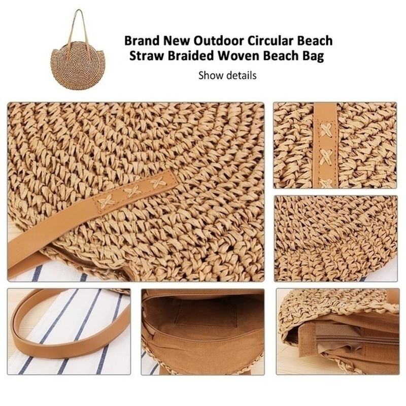 Kobiety Wypoczynek okrągła torba ze słomy Tkana torba plażowa na ramię
