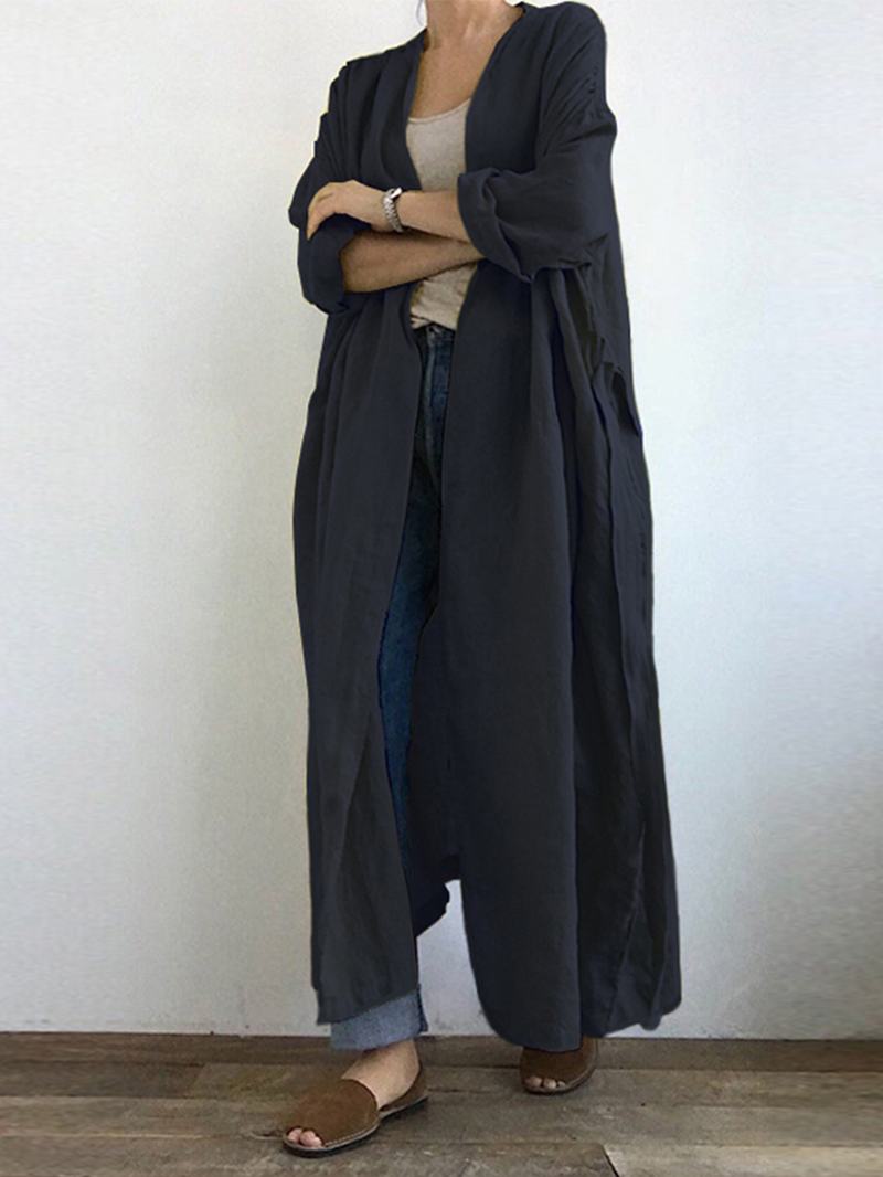 Damski Kardigan O Długości Do Połowy Łydki 100% Bawełny Sznurowany Z Dekoltem W Szpic I Bocznymi Kieszeniami