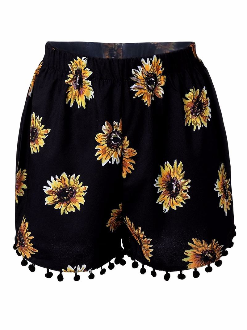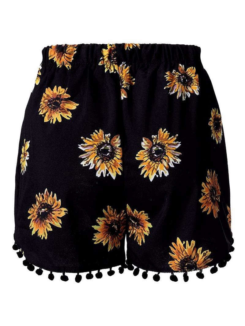 Damskie Elastyczne Wysokiej Talii Szorty Z Nadrukiem Słonecznika Casual Beach Shorts