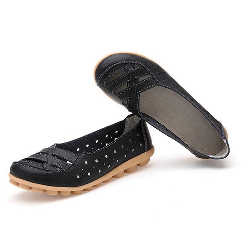Damskie Płaskie Buty Wygodne Miękkie Wsuwane Skórzane Wydrążone Na Co Dzień Płaskie Mokasyny