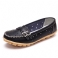 Damskie płaskie, wydrążone, luźne mokasyny z miękkiej skóry wsuwane z okrągłym noskiem