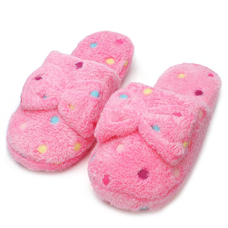 Dot Women Winter Bowknot Slipper Damskie bawełniane pantofle halowe