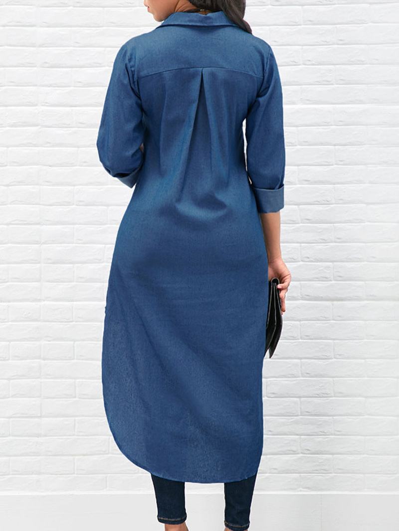 Dżinsowa Sukienka Koszulowa Z Długimi Rękawami W Jednolitym Kolorze