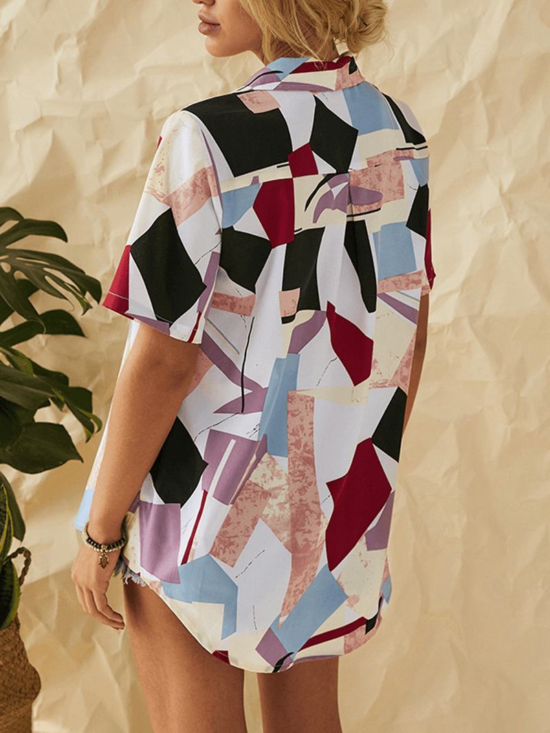 Geometryczne Patchworkowe Zapinane Na Guziki Koszule Z Nadrukiem Dla Kobiet