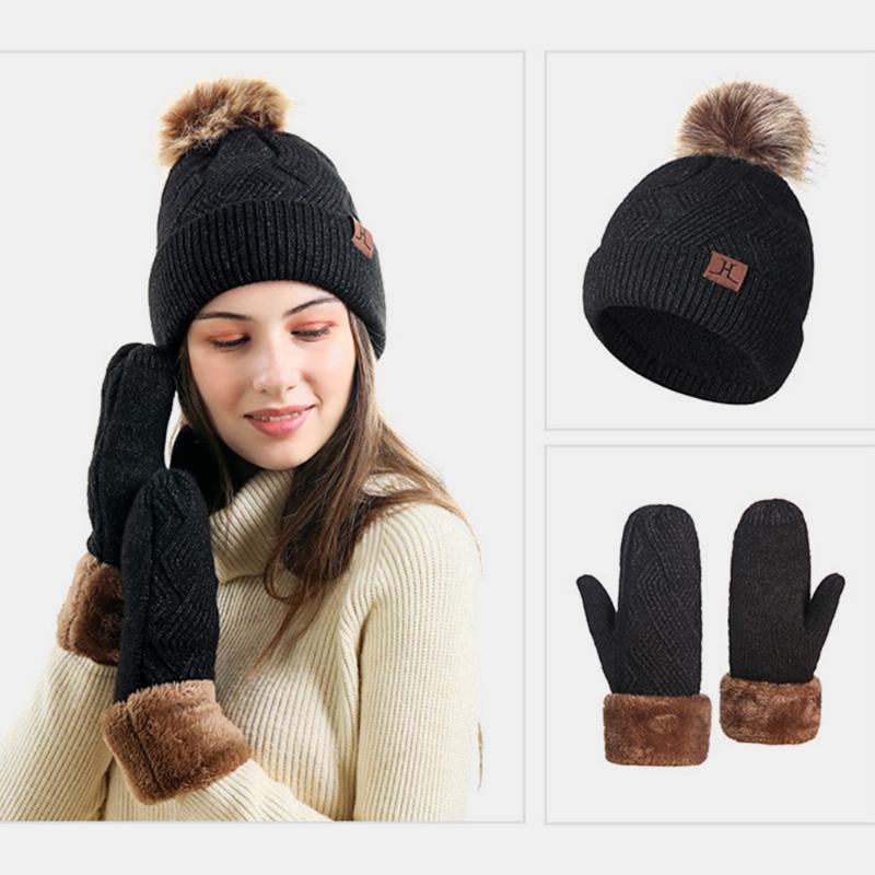 Kobiety 2 Szt. Wełna Plus Zagęścić Ciepłe Zimowe Dzianinowe Rękawiczki Z Dzianiny Z Dzianiną Z Puchową Kulką