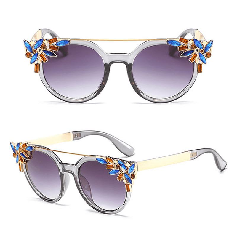 Kobiety kocie oko kryształowa oprawka Okulary przeciwsłoneczne anty-Uv Vintage Outdoor Eye Wear