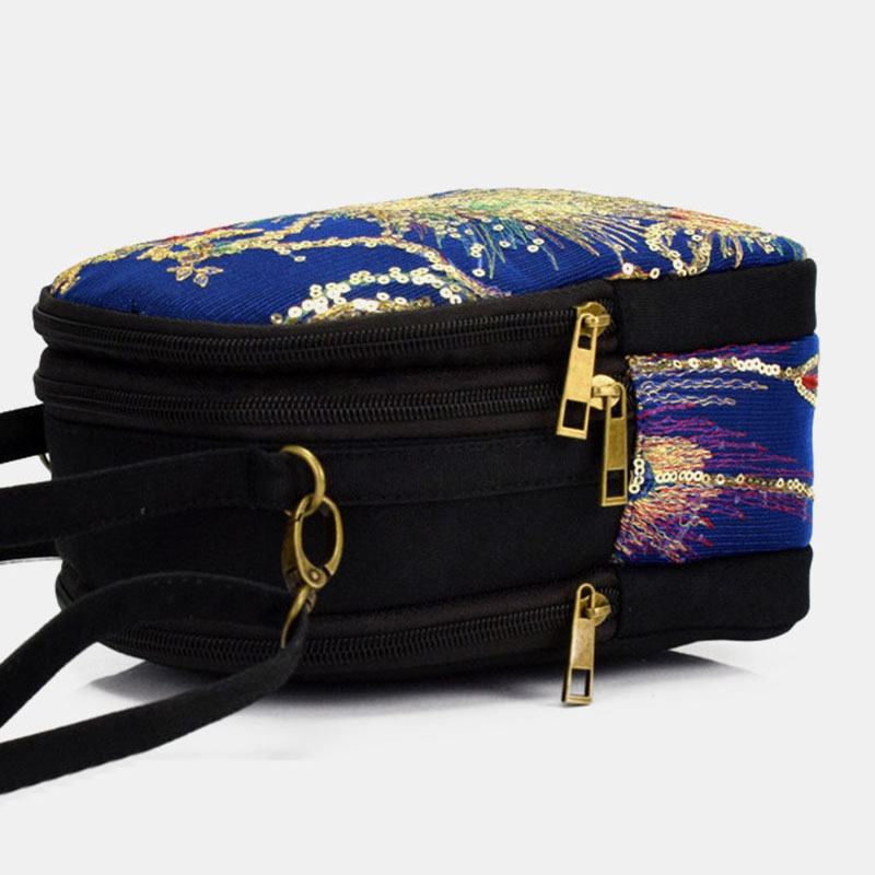 Kobiety Płótno Etniczne Hafty Pawie Wzór Cekiny Mini Multi-carry Torebka Torba Przez Ramię