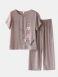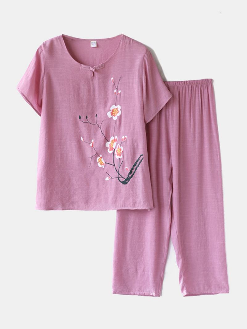 Kobiety Plus Rozmiar Kwiaty Drukuj Loungewear Zestaw Oddychająca Mandarynka Luźna Piżama