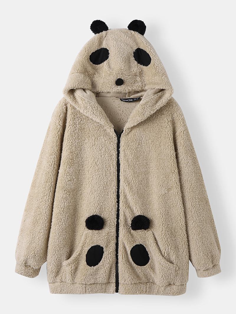 Kobiety Pluszowa Kieszeń Panda Z Długim Rękawem Casual Bluzy Z Kapturem