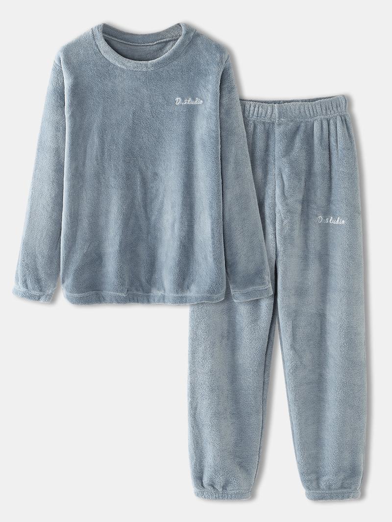 Kobiety Solid Color Miękki Sweter Z Długim Rękawem Elastyczny Pas Spodnie Domowe Zestaw Piżamy