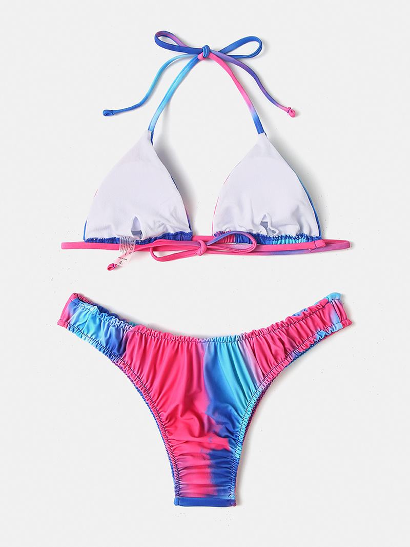 Kobiety Tie-dye Drukowanie Halter Backless Elastyczne Bikini Z Niską Talią Kostiumy Kąpielowe