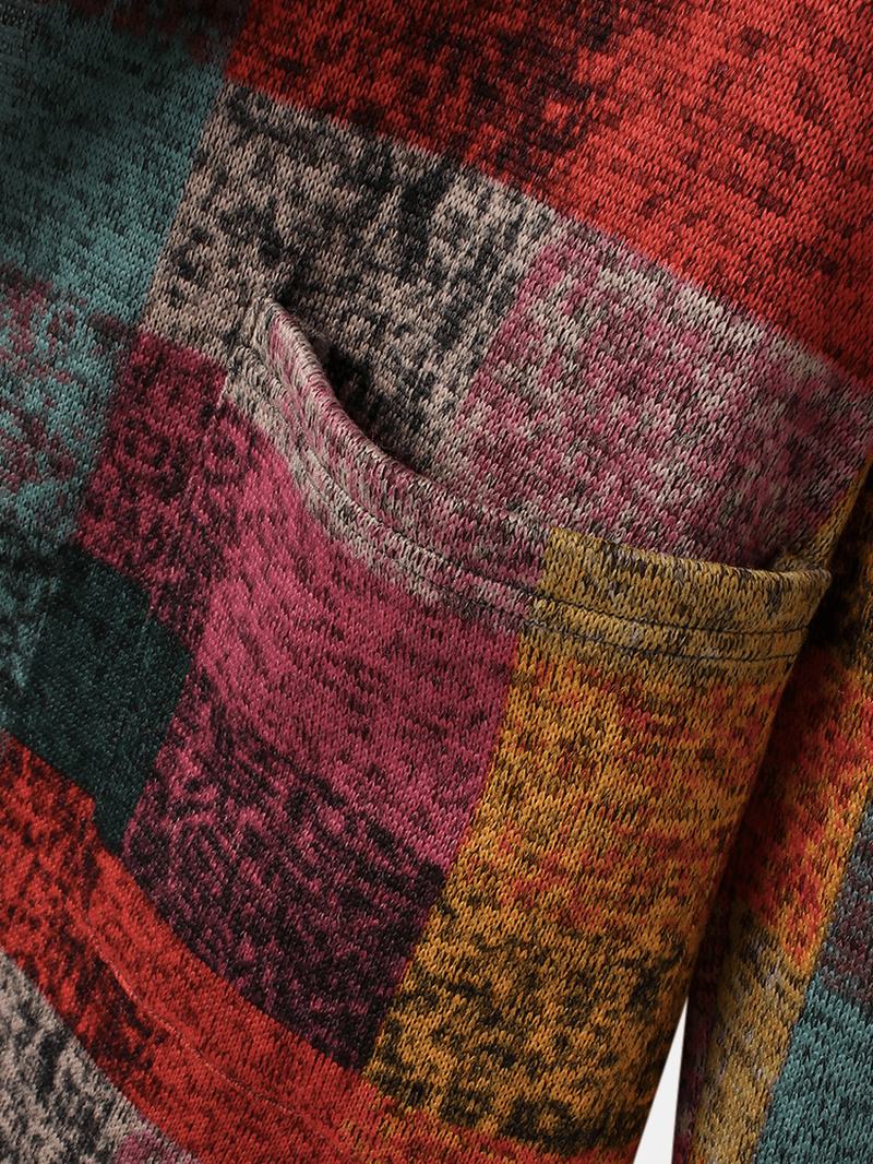 Kobiety W Kolorowe Kratki Z Otwartą Przednią Podwójną Kieszenią Casual Z Kapturem Cardigan Coats