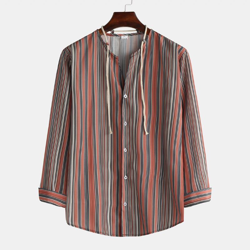 Kolorowe modne koszule w paski z długim rękawem i sznurkiem