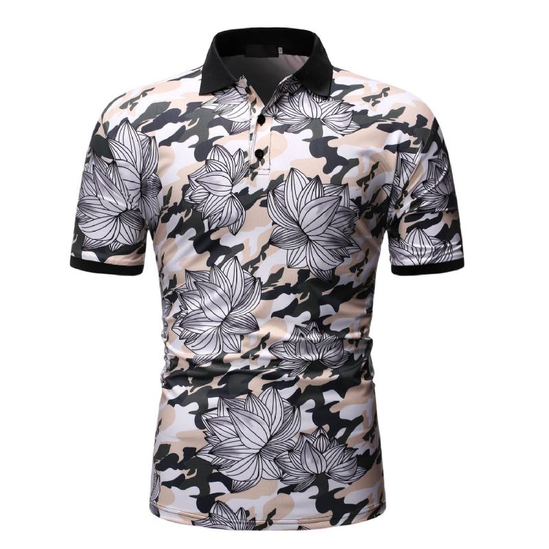 Modne męskie koszule z klapami z krótkim rękawem i nadrukiem