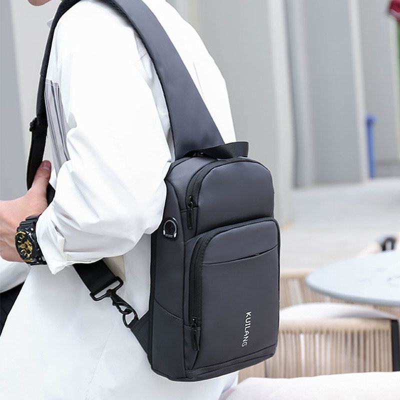 Mężczyźni Oxford Duża Pojemność Usb Ładowanie Torba Na Klatkę Piersiową Moda Casual Wild Bus Card Pocket Design Torba Crossbody Torba Na Ramię