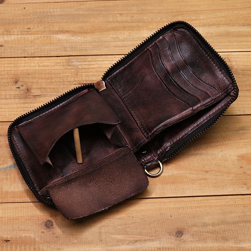 Mężczyźni Prawdziwej Skóry W Stylu Vintage Krótkie W Trudnej Sytuacji Fałdy Etui Na Zamek Błyskawiczny Portmonetka Portfel Na Pieniądze