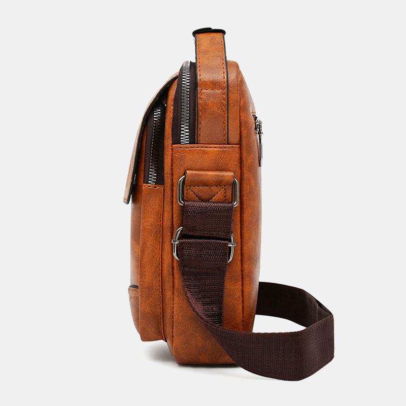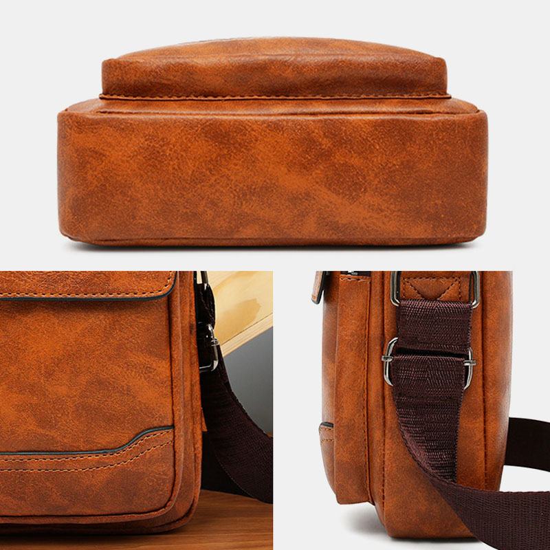 Mężczyźni Pu Leather Multi-pocket Anti-theft Retro Crossbody Torby Torba Na Ramię Torebka Torba Teczka