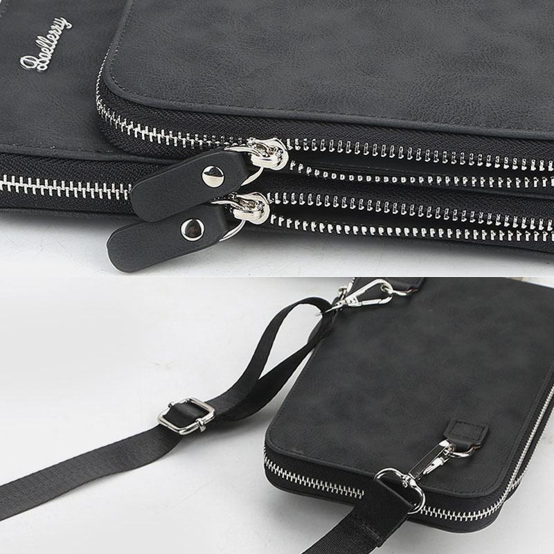 Baellerry Men Faux Leather Wielofunkcyjny pionowy o dużej pojemności Podwójny zamek błyskawiczny Torba na telefon 6.3 cala Portfel na ramię