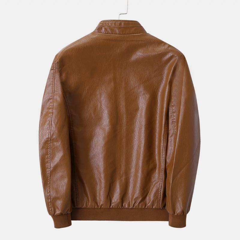 Męska Kurtka Pu Vintage Stand Collar Zipper Gruba Codzienna Kurtka