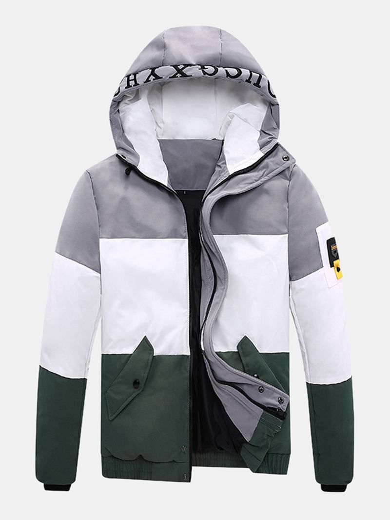 Męska Kurtka Puchowa Z Nadrukiem W Kolorowe Paski Patchworkowa Ciepła Kurtka Z Kapturem I Kieszenią