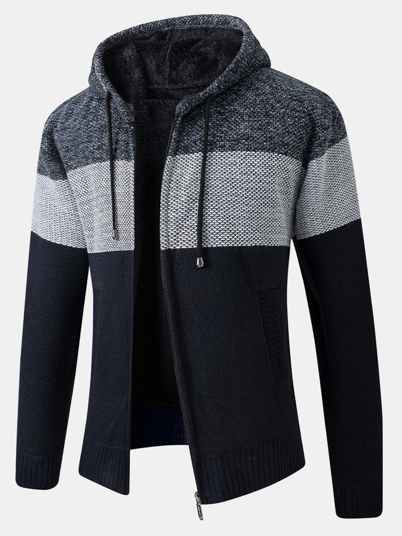 Męska Kurtka Z Grubej Ciepłej Dzianiny Z Wełny Colorblock Z Długim Rękawem