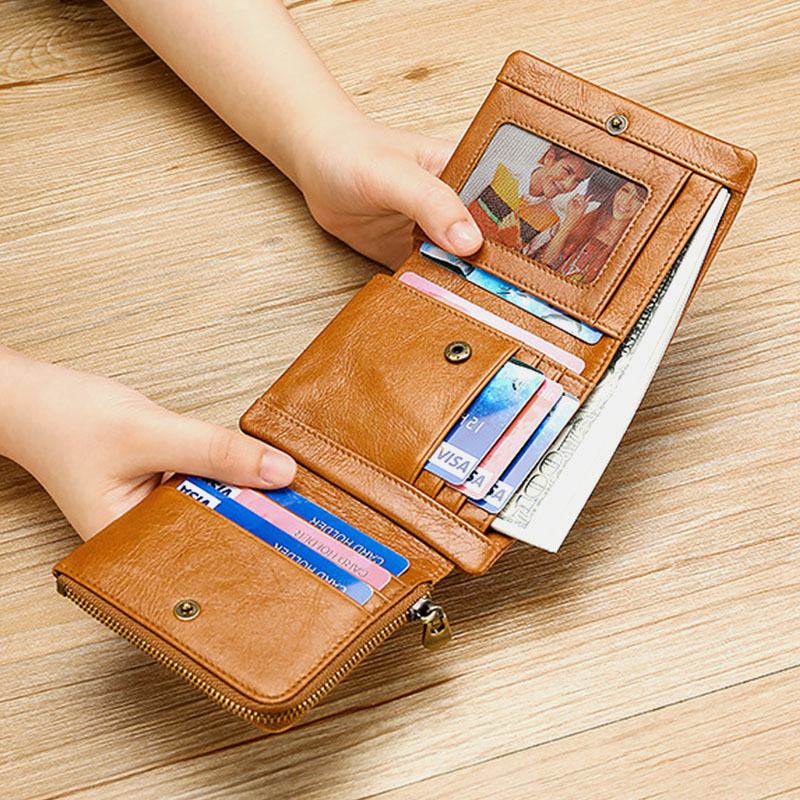 Męska Skórzana Skóra Bydlęca Retro Business Trifold Multi-slot Torba Na Monety Portfel Na Karty