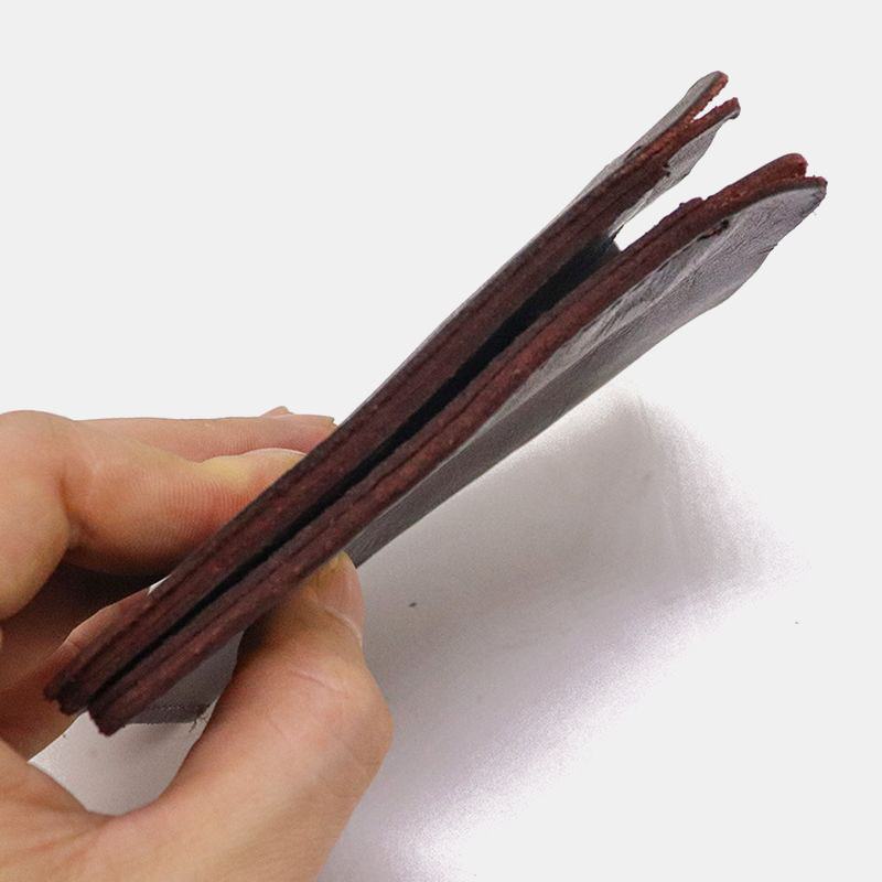 Męski, składany, cienki portfel Prosty retro etui na karty ze skóry garbowanej roślinnie Portmonetka Klip na pieniądze