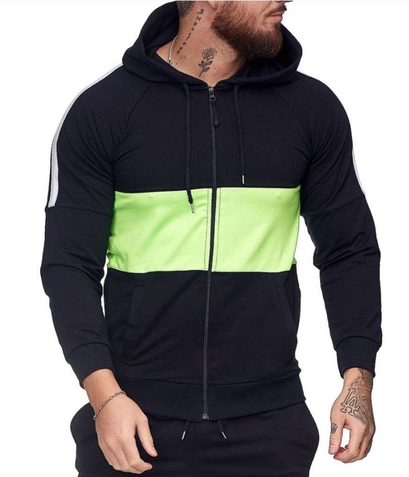 Męski Kardigan Sportowy Slim Sweter Kolorowy Blok Moda Casual Jacket Tops