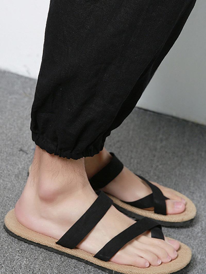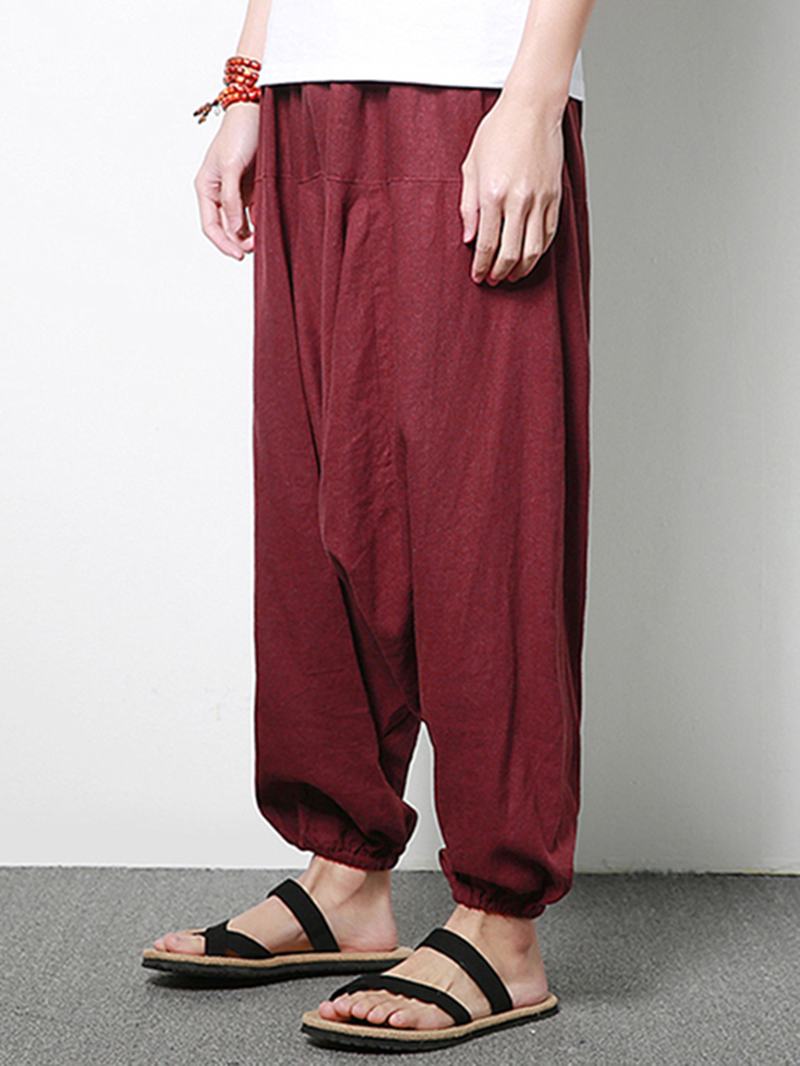 Męskie Bawełniane Lniane Spodnie Harem Casual Baggy Luźne Spodnie Modne Spodnie Z Szerokimi Nogawkami