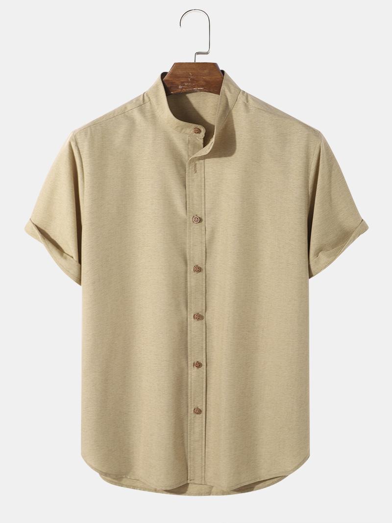 Męskie nieformalne, jednokolorowe koszule z kołnierzykiem typu grandad, zapinane na guziki