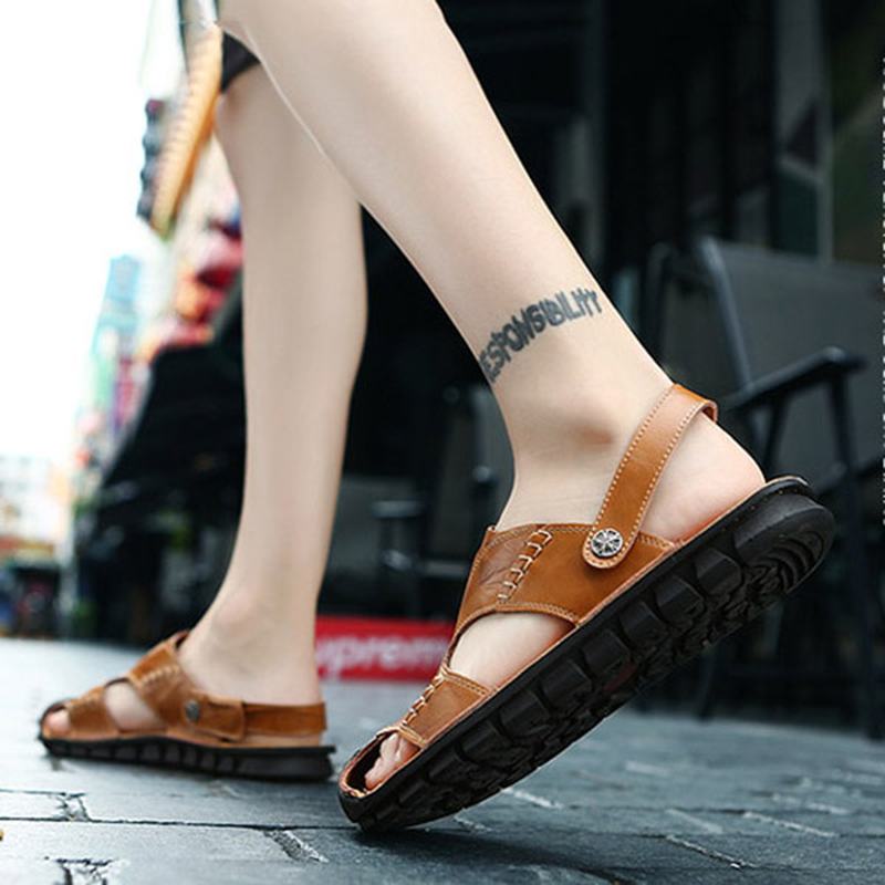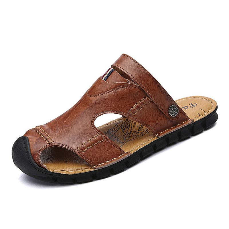 Męskie Dorywczo Miękkie Antykolizyjne Sandały Z Prawdziwej Skóry