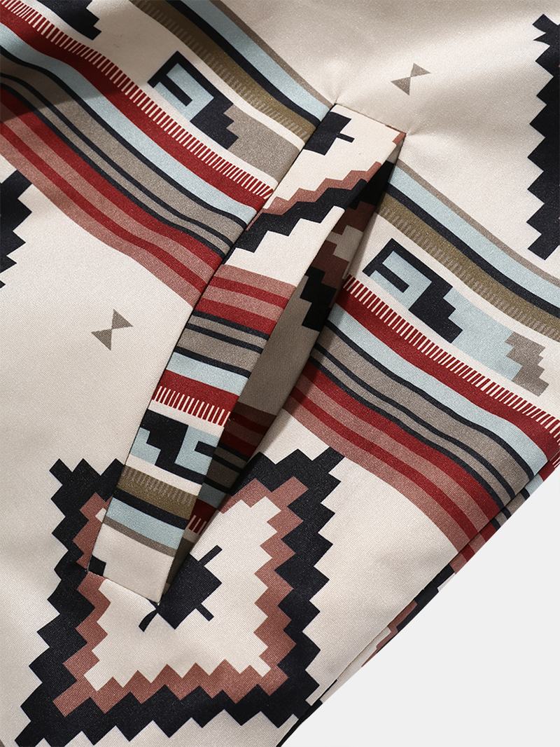 Męskie Geometryczne Nadruki W Paski Skośne Kieszenie Kurtki Z Klapami