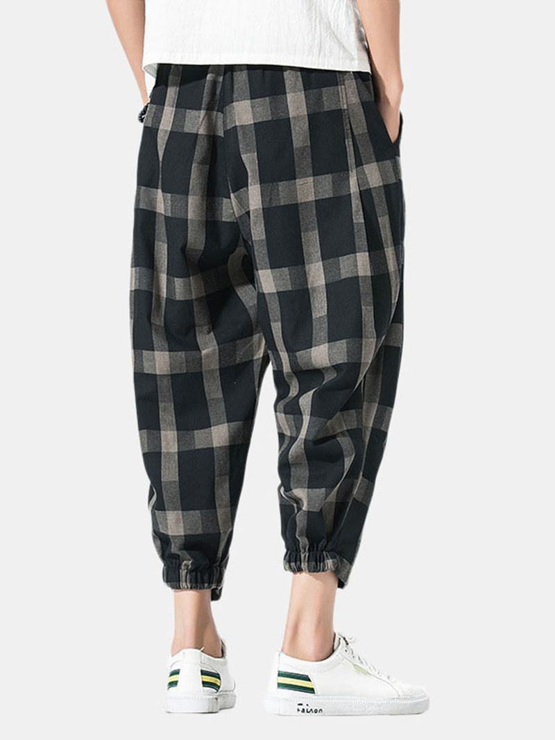 Męskie Lniane Spodnie Harem Ze Sznurkiem W Kratkę