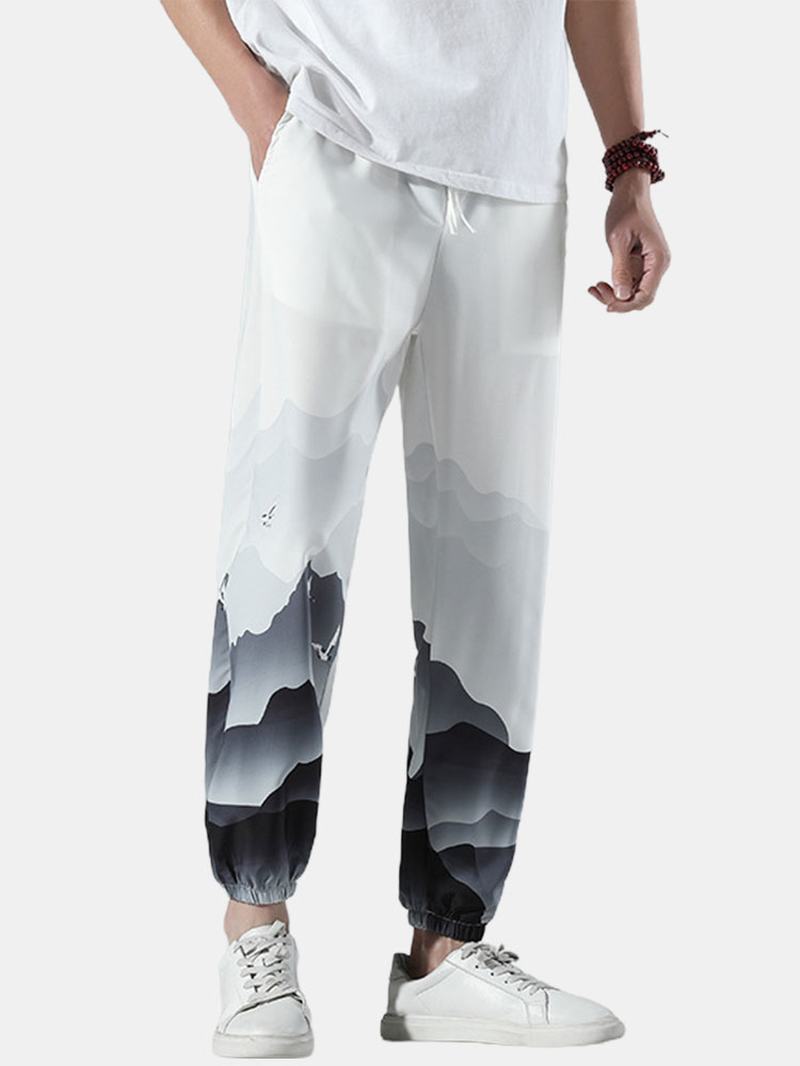 Męskie Luźne Spodnie Z Nadrukiem Krajobrazowym