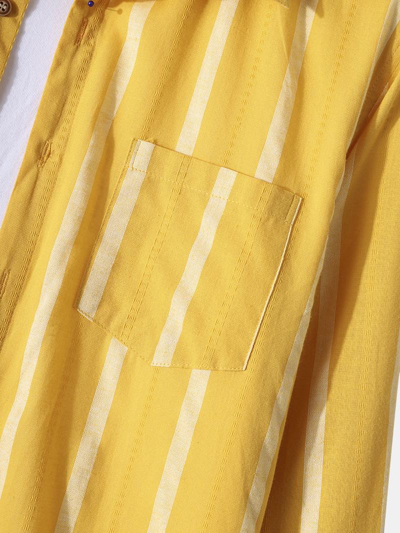 Męskie Pionowe Paski Zapinane Na Guziki 100% Bawełny Casualowe Koszule Z Długim Rękawem