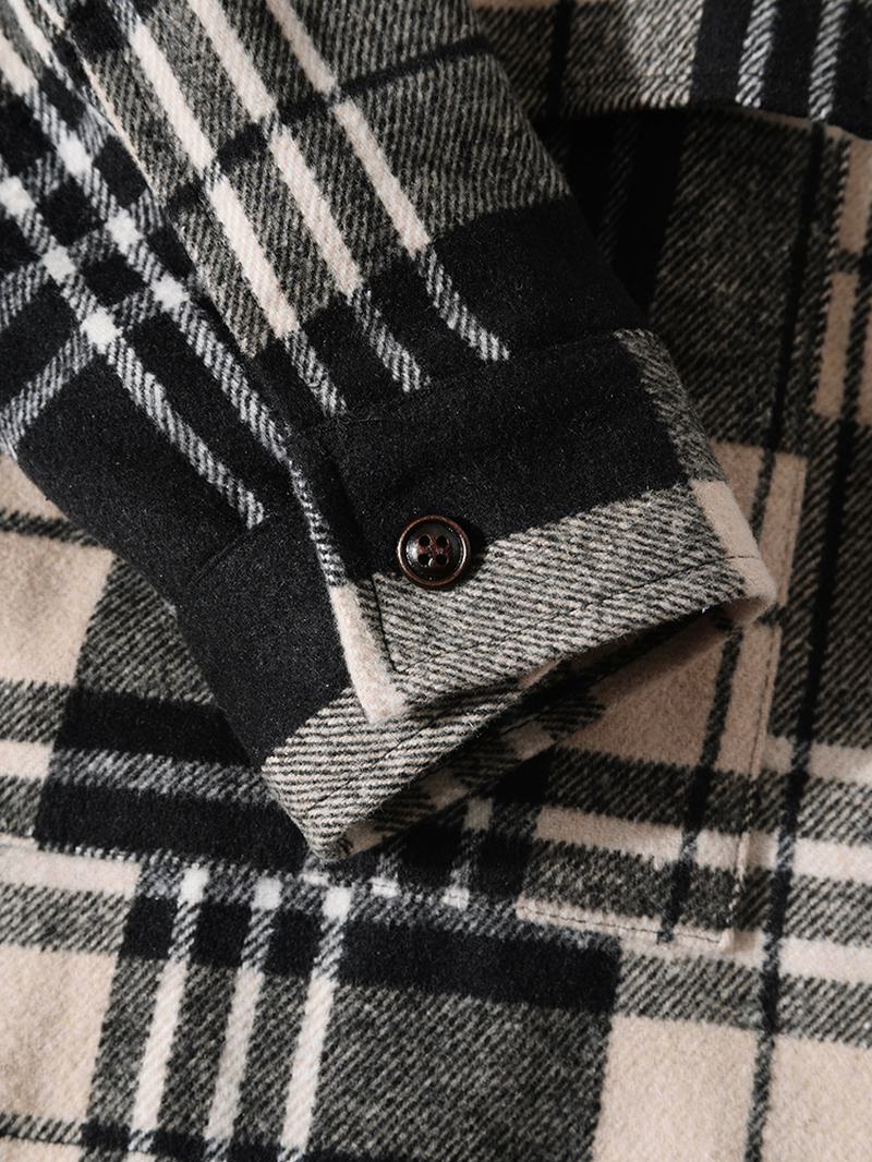 Męskie, zapinane na zamek w kratę, z podwójnymi kieszeniami, zapinane na guziki, codzienna kurtka z kapturem z długim rękawem