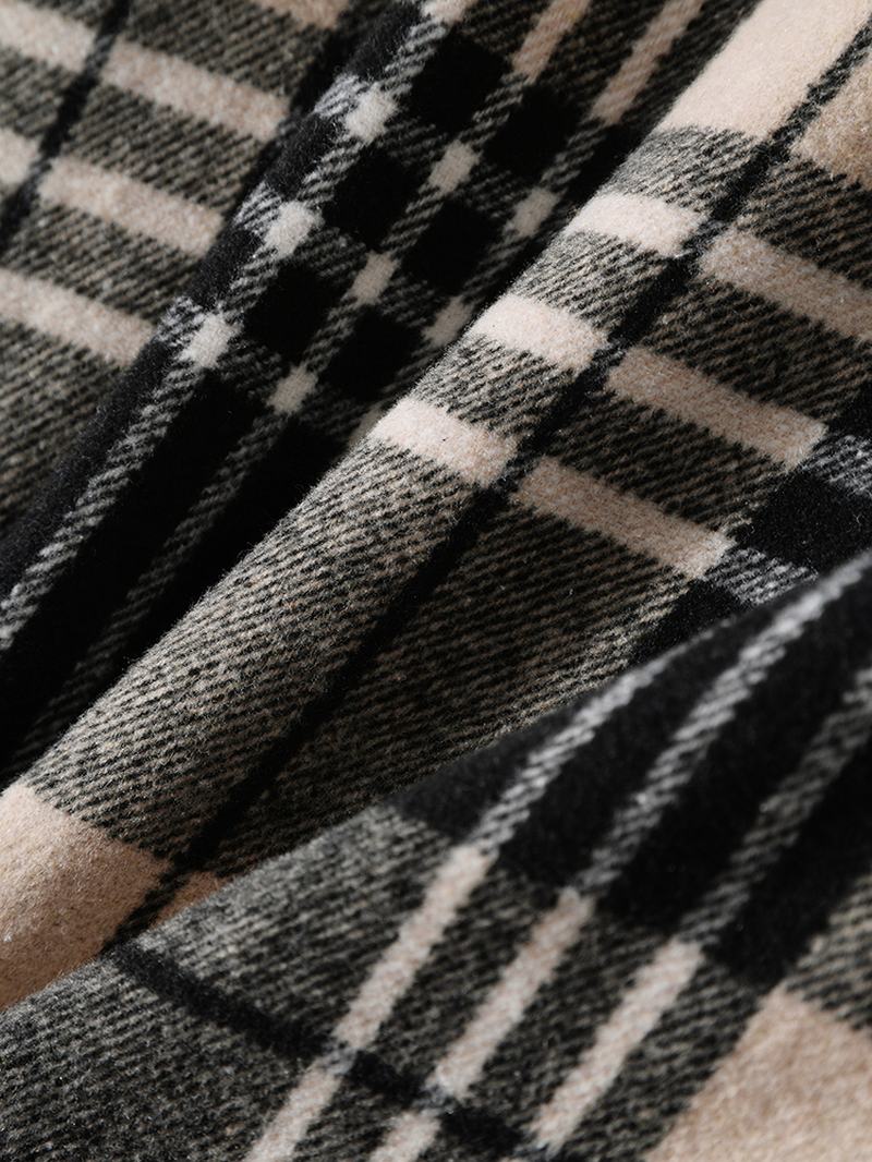Męskie Plaid Zipper Podwójne Kieszenie Sznurek W Stylu Casual Z Długim Rękawem Z Kapturem