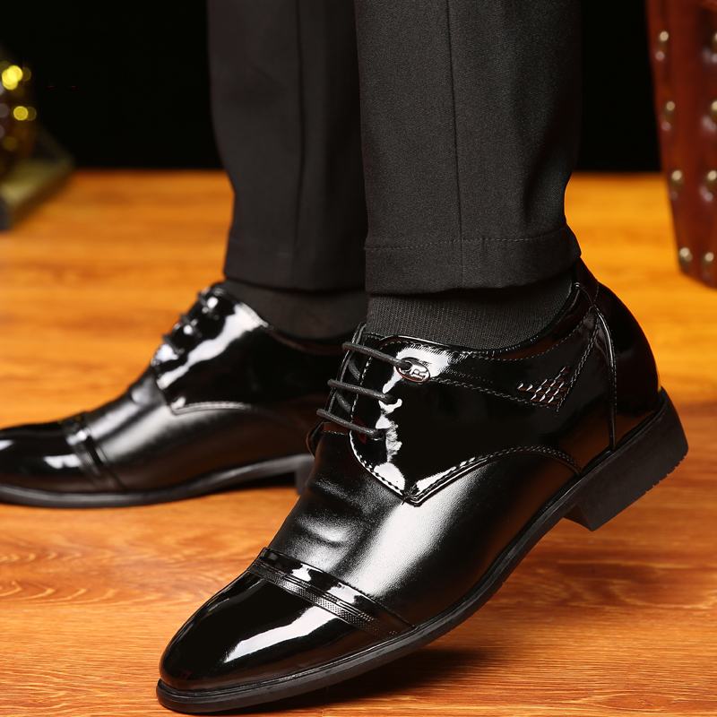 Męskie buty ze skóry z mikrofibry, antypoślizgowe i szpiczaste na wysokim obcasie, klasyczne buty biznesowe