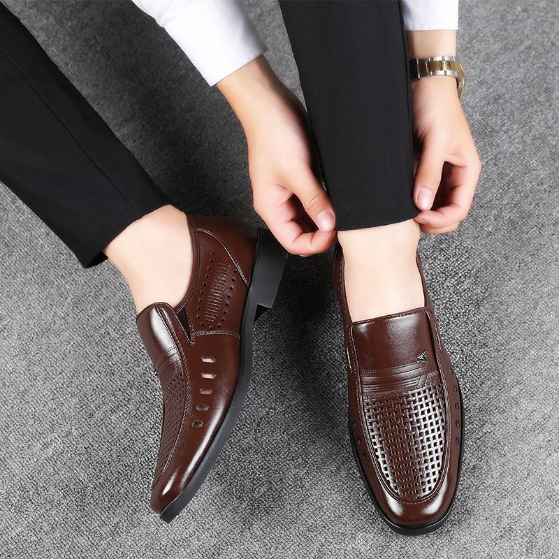 Męskie Skórzane Buty Z Mikrofibry Oddychające Drążone Buty Na Co Dzień