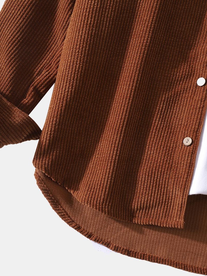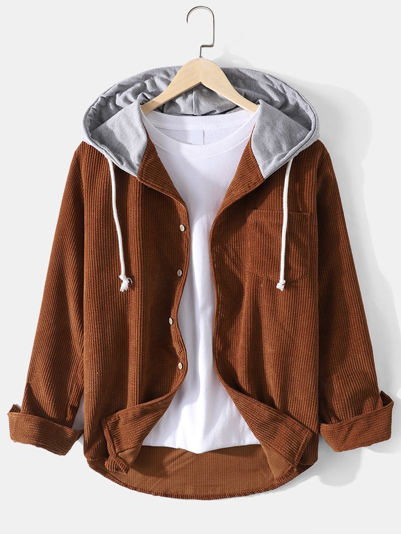 Męskie Sztruksowe Koszule Z Długim Rękawem I Sznurkiem Z Kapturem I Kieszenią