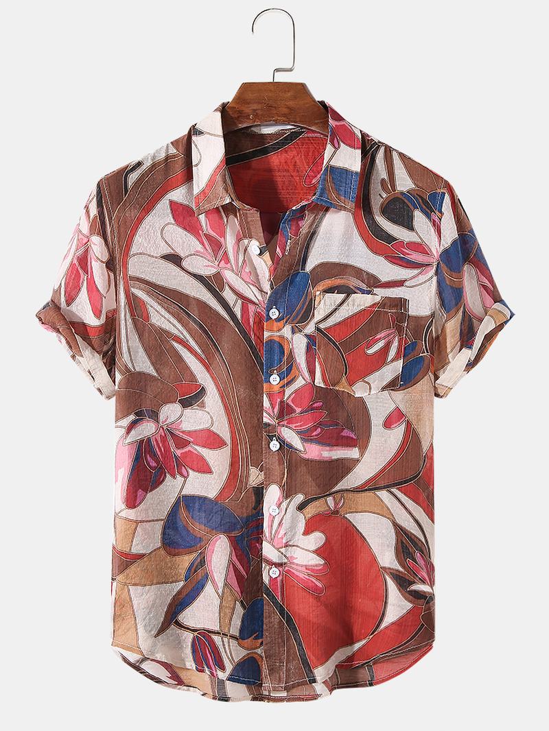 Męskie Wakacyjne Kwiatowe Rośliny Z Nadrukiem Klapy Casualowe Koszule Z Krótkim Rękawem